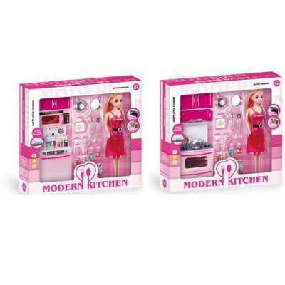 Descripción Batería de cocina con la luz,sonido,muneca(serie de cocina,con batería,colores sólido,2 estilos mixto)