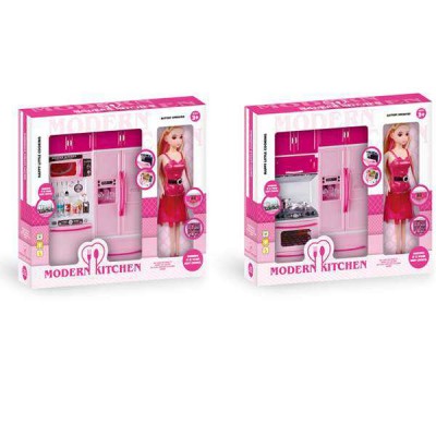 Descripción Batería de cocina con la luz,sonido,muneca(serie de cocina,con batería,colores sólido,2 estilos mixto)