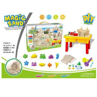 Descripción Escritorio playa con arena cinética,cuchillos,pala playa,rastrillo,molde divertido,Molde de arena de playa