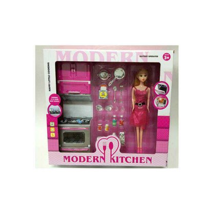 Descripción Batería de cocina con la luz,sonido,muneca(serie de cocina,con batería,Pintura,2 estilos mixto)