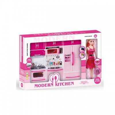 Descripción Batería de cocina con la luz,sonido,muneca(serie de cocina,con batería,colores sólido)
