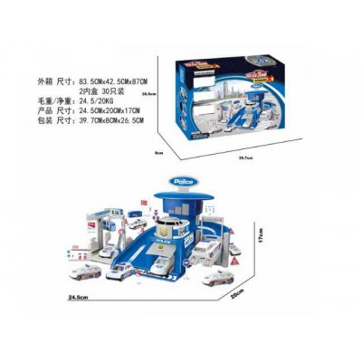 Descripción Juguetes de estacionamiento con autobús (plástico),Morir coche fundido 2PCS(estación de policía)