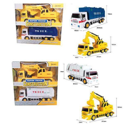 Camión del fricción conjunto(2 piezas ,Excavadora,Camión,blanco/azul/amarillo ,2 estilos mixto)