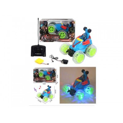 Mando a distancia coche del truco con truco,Dale la vuelta,música,luces intermitentes,rueda delantera 360 grados rotación,rueda trasera telescópica,De pie caminar,batería recargable,cargador(Capitán American)