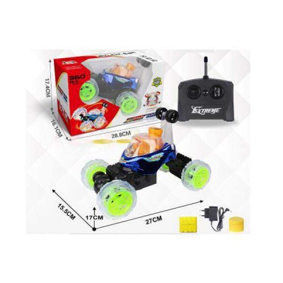 Descripción 40 frecuencia Mando a distancia coche del truco con música,luz intermitente,360 grados rotación,rueda trasera telescópica,truco,disparos de bala (EVA)