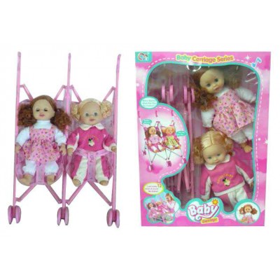 14 pulgada Cochecito de muñecas(2 pcs) con sonido(hierro,rosado/rojo)