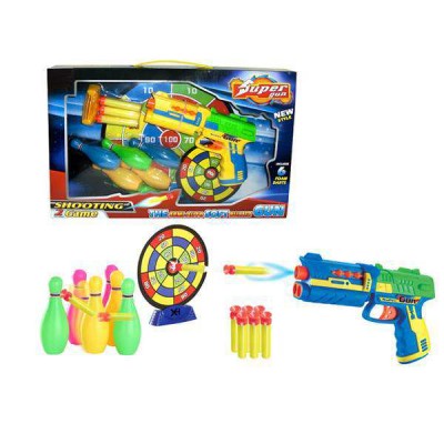 EVA gun with 6 PCS bullet,shooting target holder,Dart target,6 PCS Bowling set(yellow/blue)