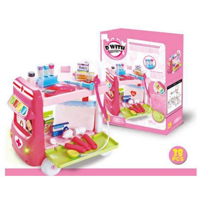2018 hot selling Doctor toys table with light,multi-functional(bus cart 38 pcs) new toy play doctor toy