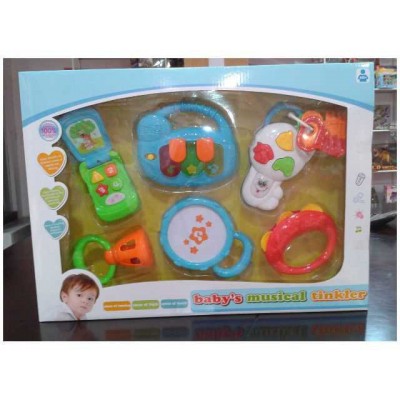 DescriptionCartoon baby toys with light,music (Organ,Baby rattle (annunciator,bell,moon bell,drum),Mobile phone)