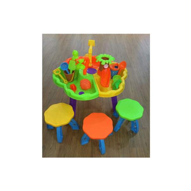 DescriptionBeach desk with chair,beach shovel,rake,beach sand mold,beach bucket,showers,accessories(31 PCS, color ful,water-sand table)