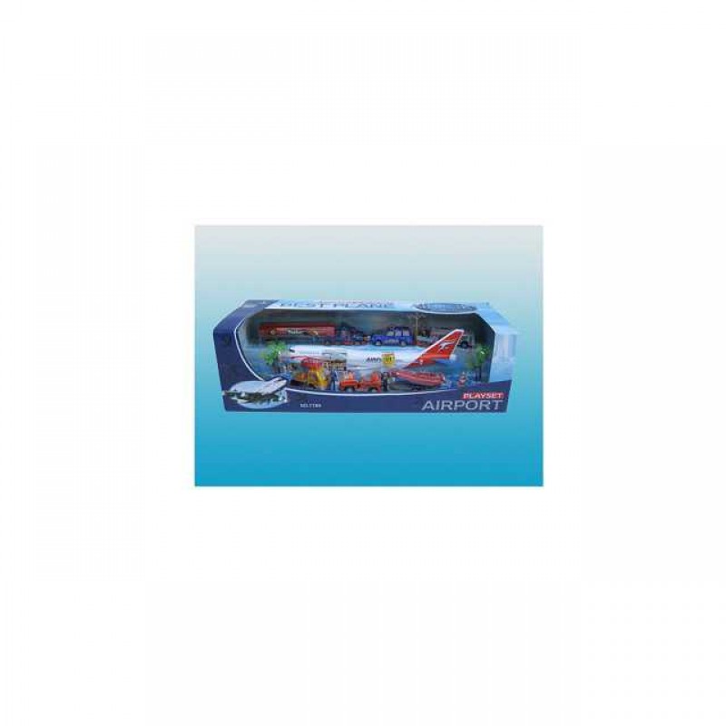 DescriptionFriction toy set(aircraft,Slide car,oil truck(pull back),doll,road signs,barricade,tree)(airport series)