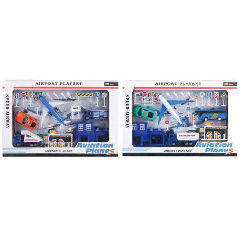 Pull back toy set (aircraft,car,road signs,barricade,house,gasoline station/aircraft,car,road signs,house,gasoline station)(2 styles mixed)