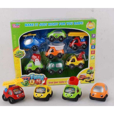 new Slide toy set(7 pcs,concrete mixer,ladder truck,dump truck,crane,aircraft,red/yellow/green/orange) cute slide vehicle toy set