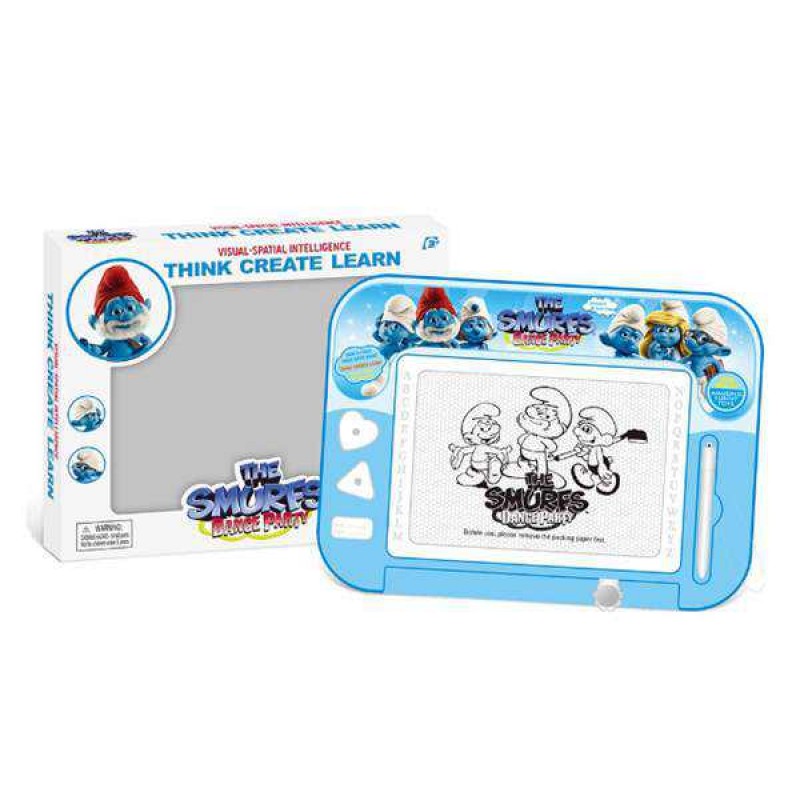 DescriptionDrawing board with color ed magnetism,pen,accessories(The Smurfs)