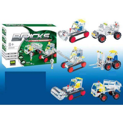 Iron assembly toys(528 pcs,crane,forklift truck,road roller,dump truck,bulldozer)