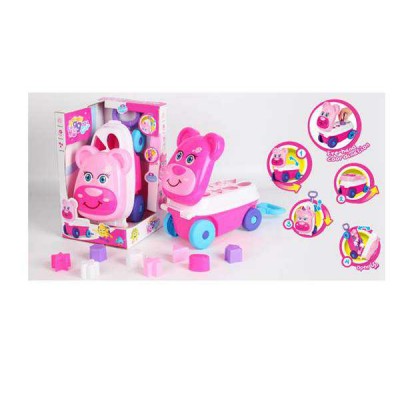 DescriptionBlock car with 8 pcs building block(doll bear,luggage,rose Red/pink)