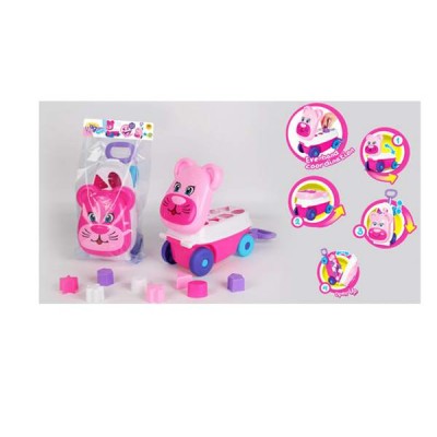 DescriptionBlock car with 8 pcs building block(doll cat,luggage,rose Red/pink)