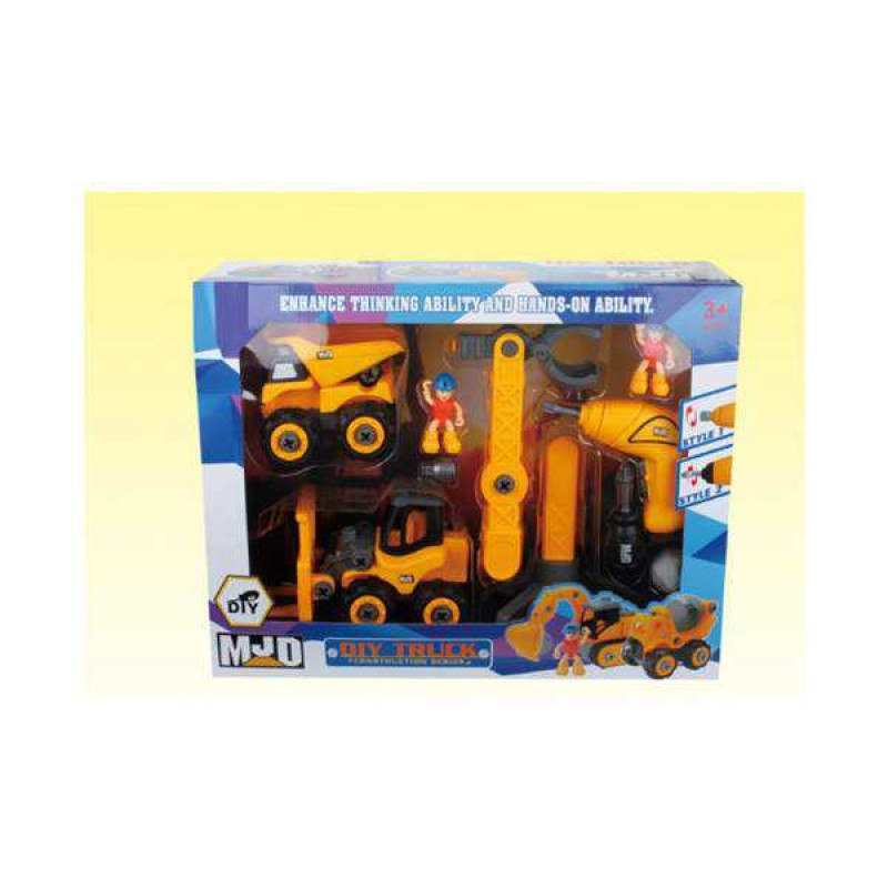 DescriptionPlastic assembly toys with tools,doll,accessories (removable,dump truck,forklift truck)