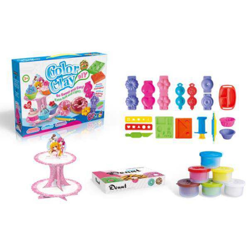 DescriptionPlasticine (180 g)with knife,squeeze bucket,rolling mold,food plate,2PCS stamper,4PCS 3D cookie mold,2PCS 3D flower mold,2PCS pattern mold,2PCS cake cup,displaying holder,gift box (cake)