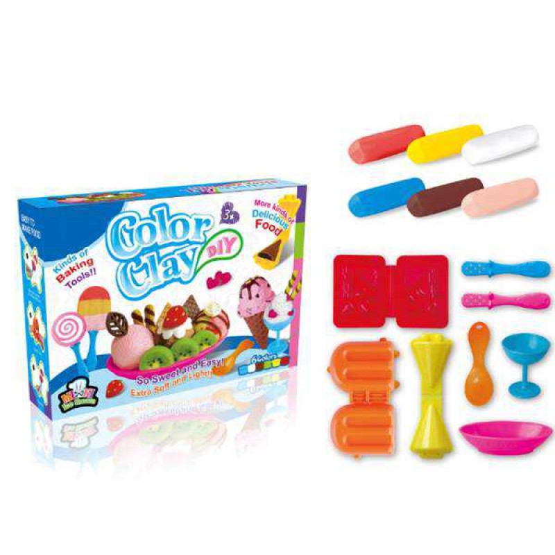 DescriptionPlasticine (150 g)with 3D flower mold,3D popsicle mold,3D ice cream mold,2PCS handle stick,spoon,goblet,oval dish 子,3PCS ziplock bag (ice cream)