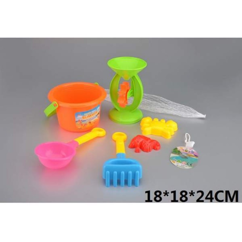 playa juguetes (playa cubo,reloj de arena,pala playa,rastrillo,Molde de arena de playa,6PCS)