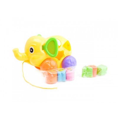 Descripción Tire de los juguetes con bloque de construcción (elefante)