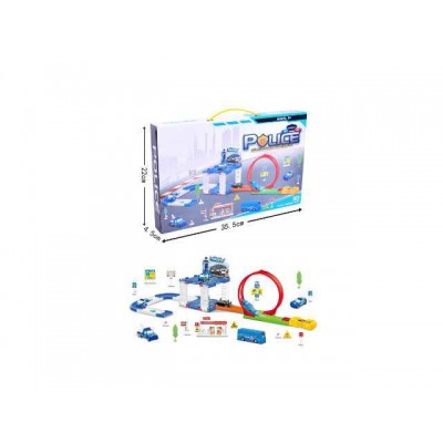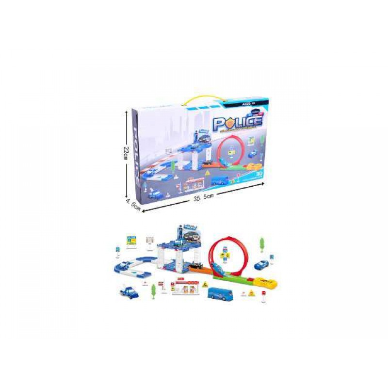Descripción Juguetes de estacionamiento(Juguetes ranura de expulsión con coche de policía,coche de carreras,las senales de tráfico,árbol,estación de gasolina)