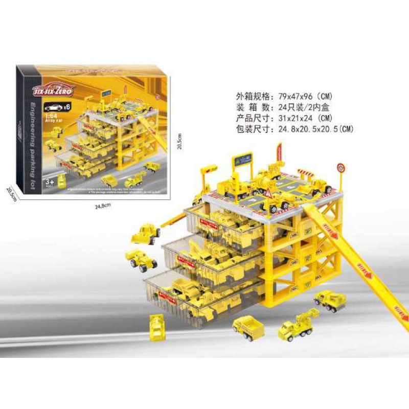Descripción Juguetes de estacionamiento con auto 6PCS(6 estilos mixto)(ncaja de almacenaje,serie del ingeniería)