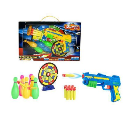 DescriptionEVA gun with 6 PCS bullet,shooting target holder,Dart target,6 PCS Bowling set(yellow/blue)