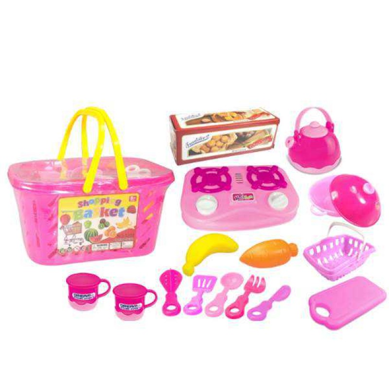 DescriptionTableware with hand basket,Food toys,Tea set (17PCS)