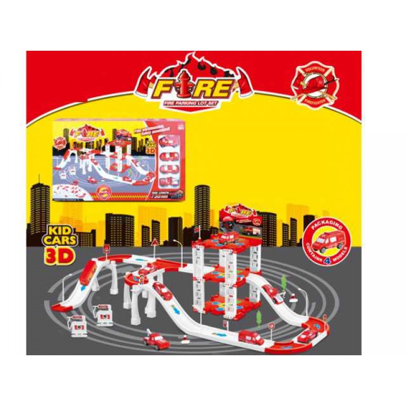 Parking lot with slot toys,Slide fire truck 4PCS(self assemble)